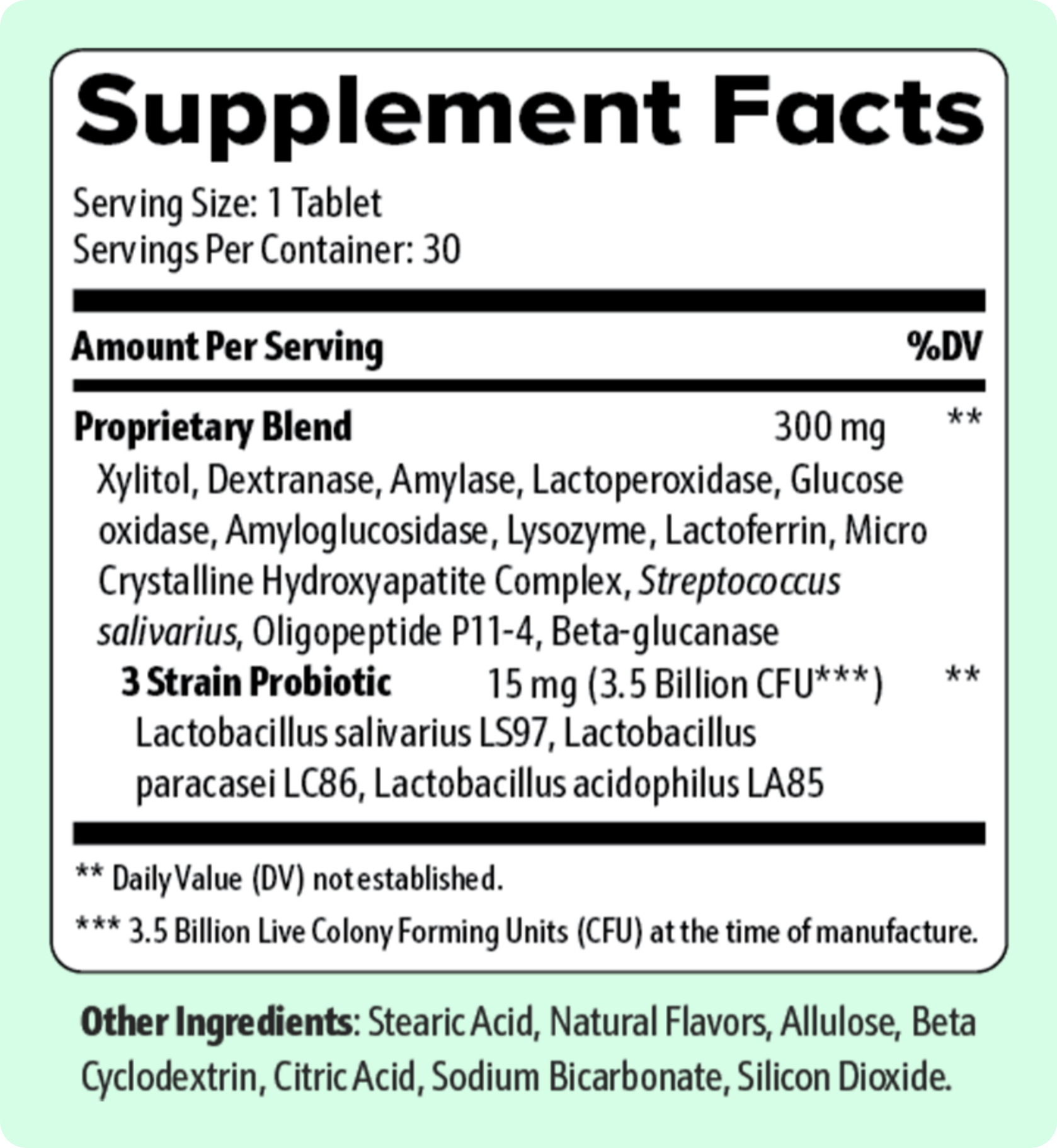 Take the recommended daily serving as directed on the label. For best results, use consistently and maintain good oral hygiene practices.